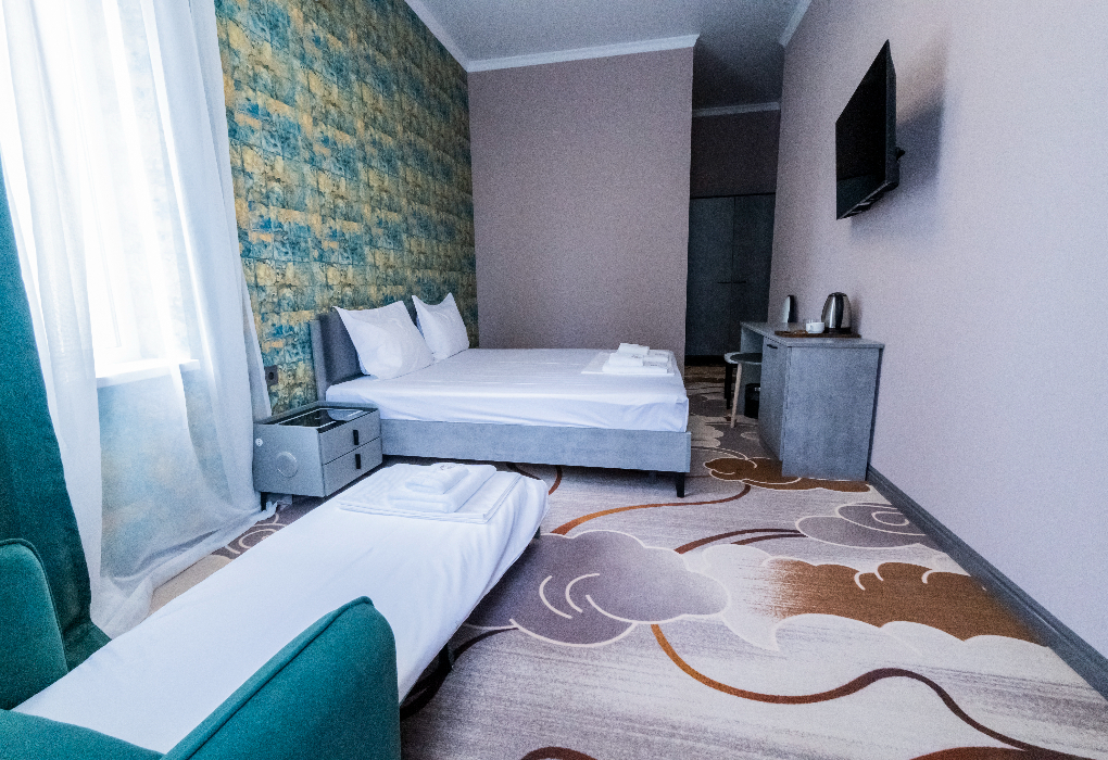 Площадь номера - 14-19 кв.м. 1 комната. 2 осн. места. В номере: телевизор; кондиционер; душ; фен; Wi-Fi; туалетные принадлежности; 1-спальные/ 2-спальная кровать; мини-холодильник; санузел. 1 доп. место: