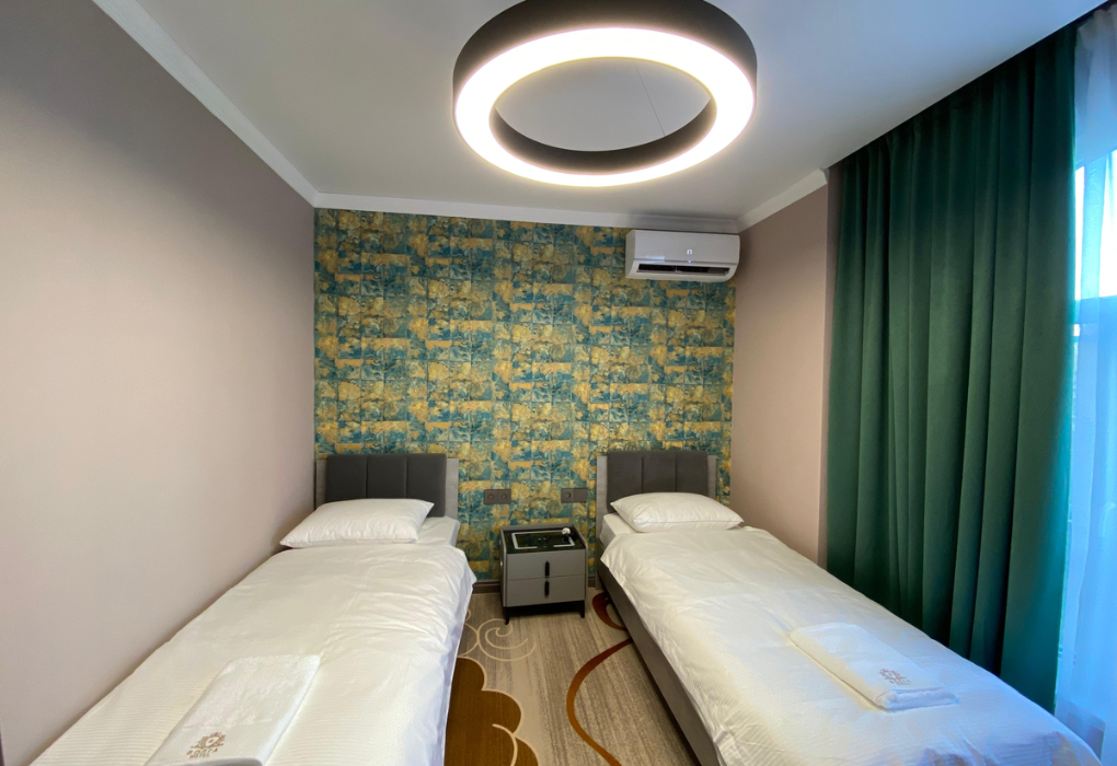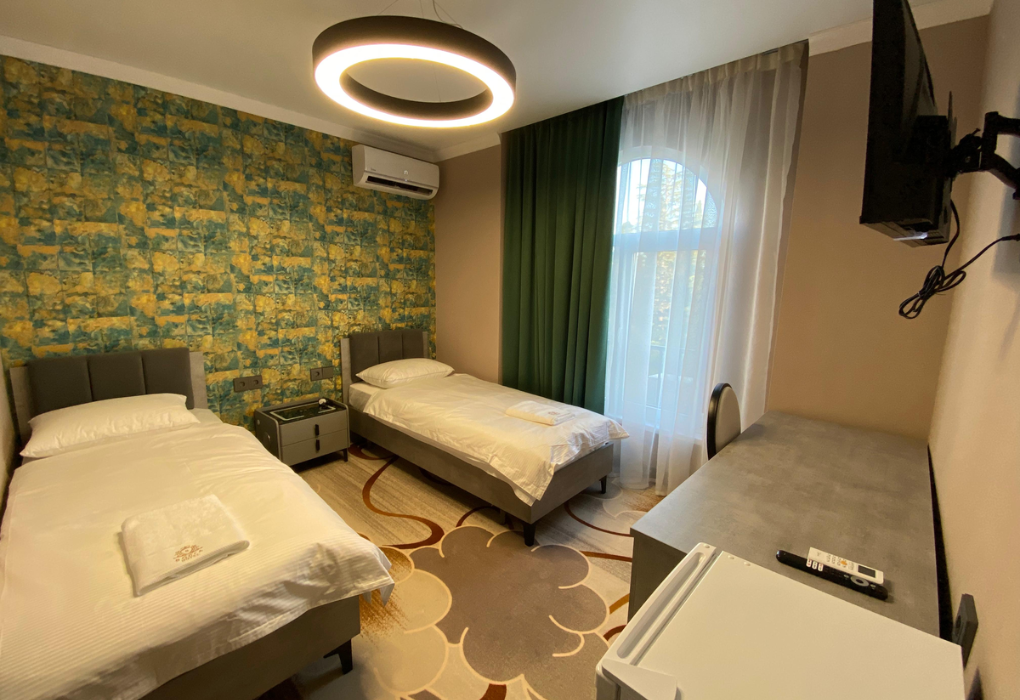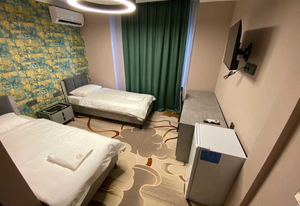 Площадь номера - 11-14 кв.м. 1 комната. 2 осн. места. В номере: телевизор; кондиционер; душ; Wi-Fi; туалетные принадлежности; 1-спальные/ 2-спальная кровать; мини-холодильник; санузел.